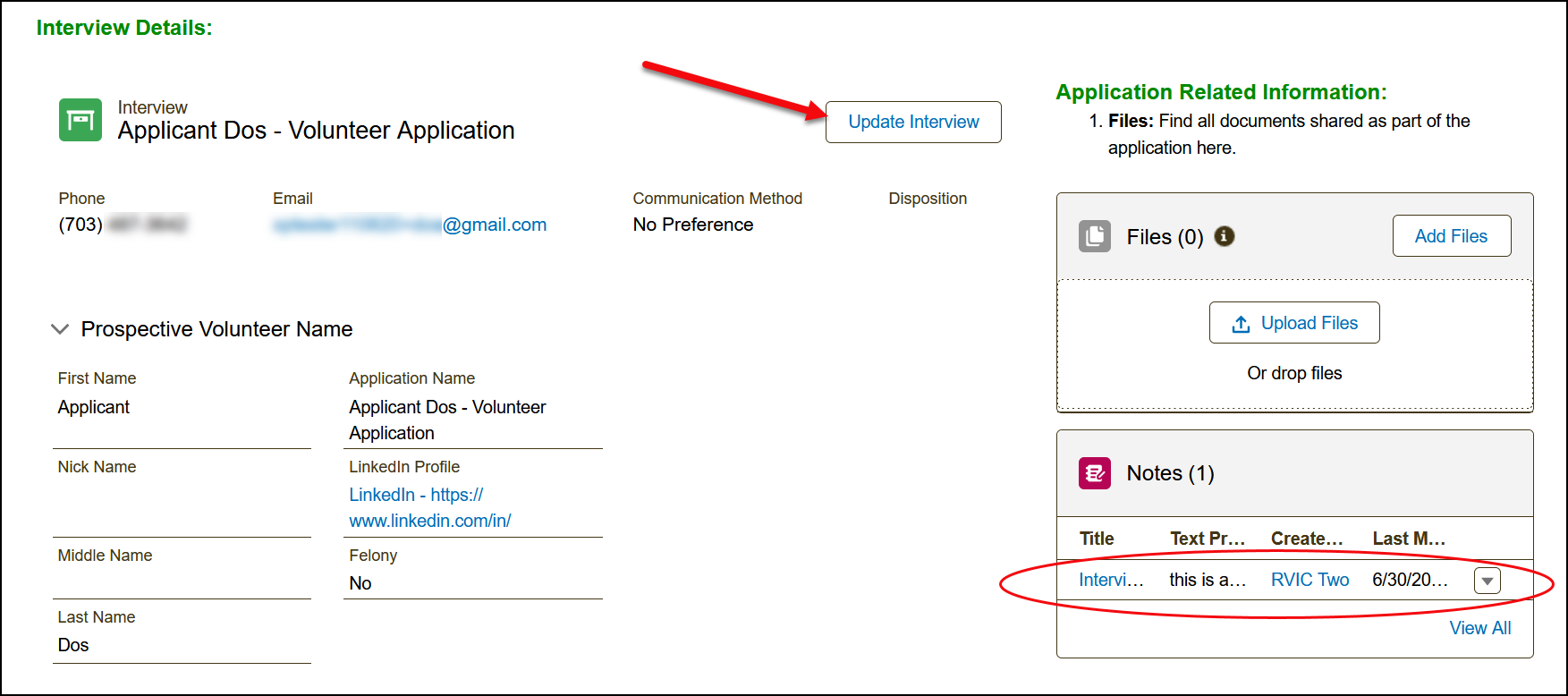 ➤ Tip: You may also view any notes added by the Regional Volunteer Intake Coordinator (RVIC) in the Notes section of the application record.