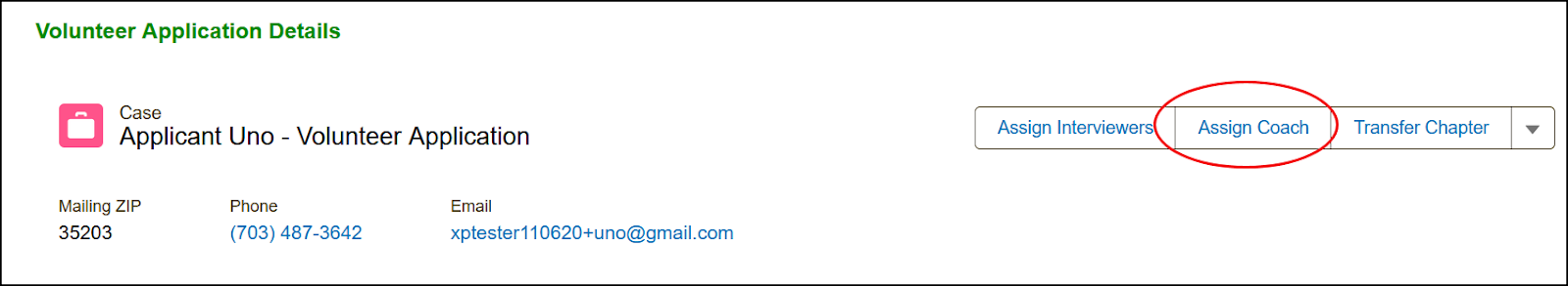 - On the application page, click Assign Coach.