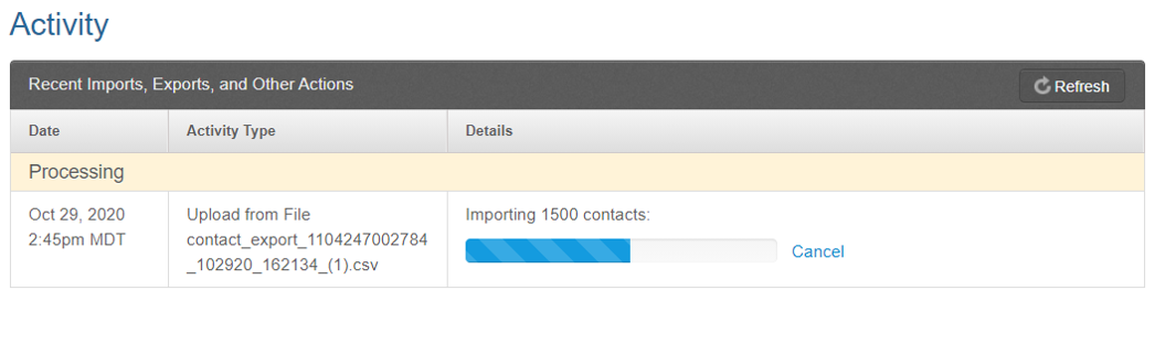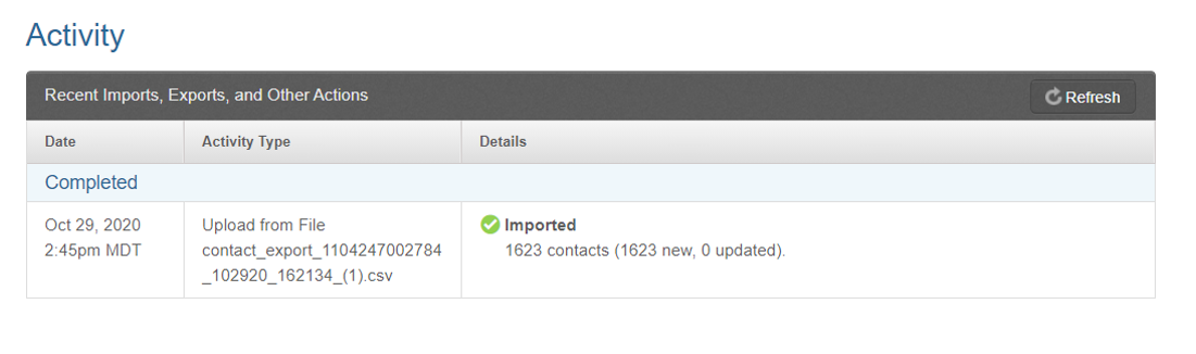 11 - Wait for contacts to load. You will see the status bar say “Imported” when it is complete