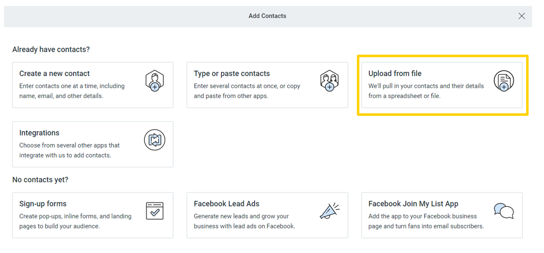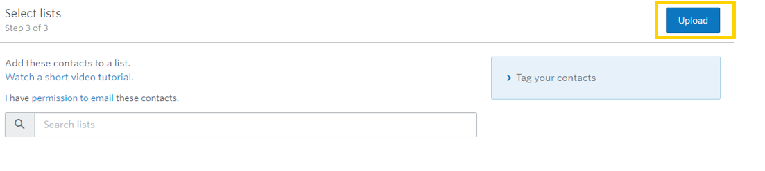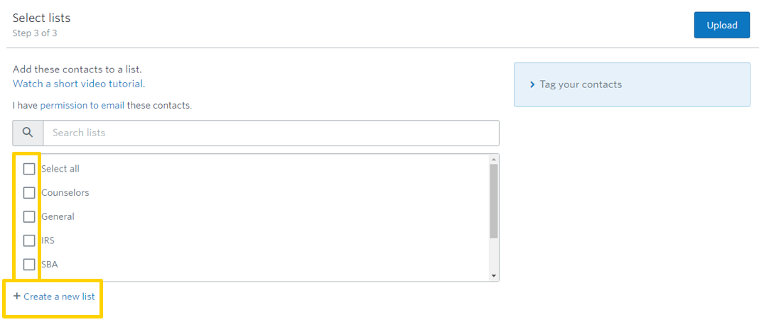 9 – Select a list you would like to upload them to. If you do not already have a list created, you can create one. You cannot upload the contacts without selecting at least one list.