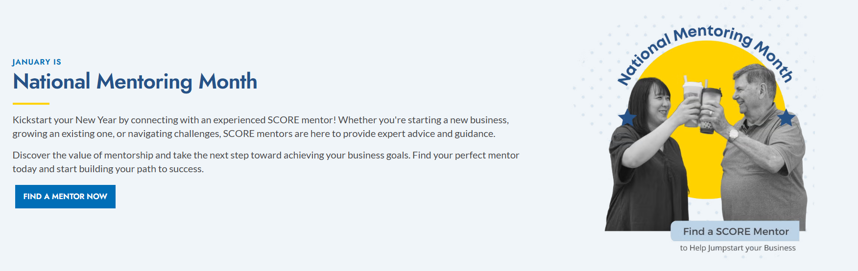 Every month, the Ecropolis Team creates an editorial content block that aligns with headquarters campaign themes and features it on your home page. For example, January is National Mentoring Month, so Ecropolis created the content block below to highlight SCORE resources related to this campaign theme.