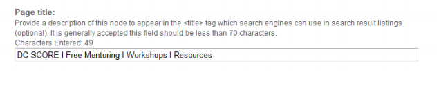 One of the most important things you need to do right now on your chapter site is MAKE IT YOUR OWN. There is plenty of default text that national has put in your website but it is a national message, not a “your chapter” message. Your website is to bring local traffic in. Your site will not challenge for a broad search term such as “small business advice” (the SCORE.org national site will draw this traffic) but it can for “small business advice New York.” That is why this is VERY important. If your chapter is New York then you need to tell the search engines you are New York SCORE. Take a look at Pittsburgh (http://pittsburgh.score.org) or Youngstown (http://youngstown.score.org) sites to see how they are doing it.