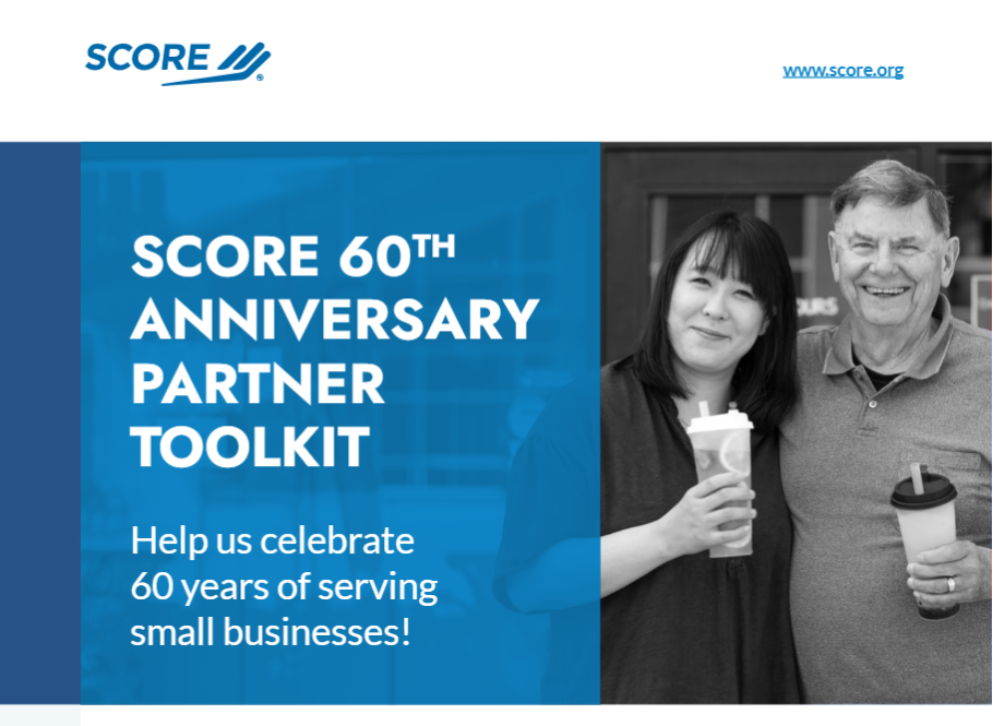 This October marks 60 years of SCORE's service to America's small businesses! To amplify this milestone, we need YOU -- our partners and supporters -- to help us celebrate. Click here to access SCORE's 60th Anniversary Partner Toolkit.