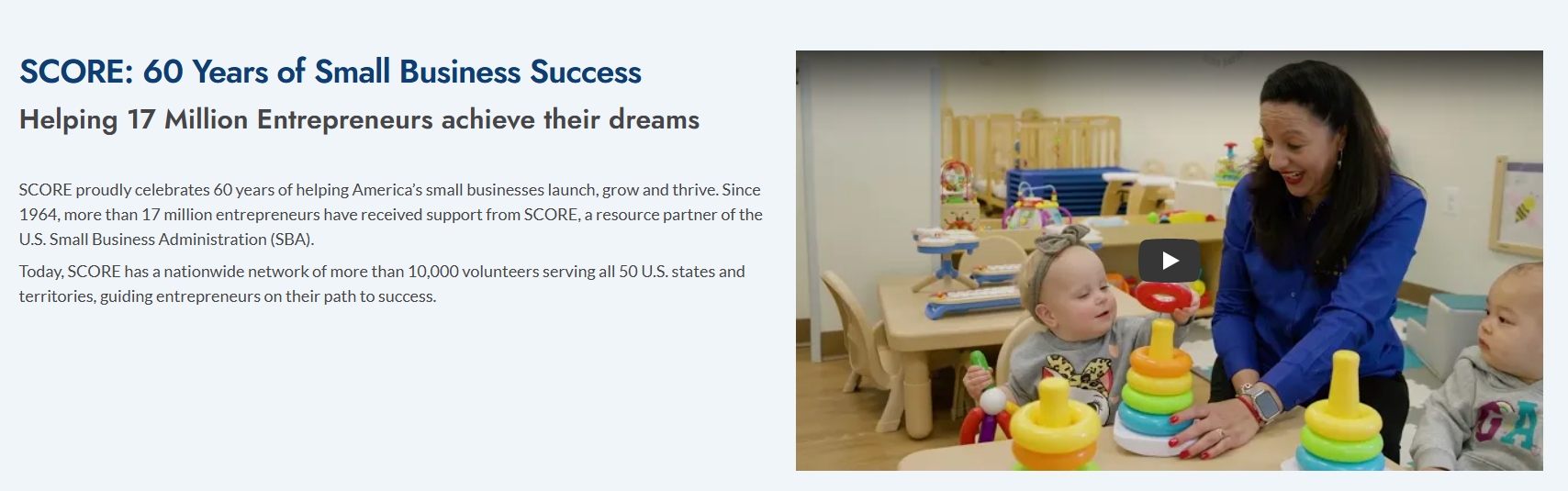 Since 1964, SCORE has helped more than 17 million entrepreneurs start, grow or successfully exit a business. Thank you for your support!