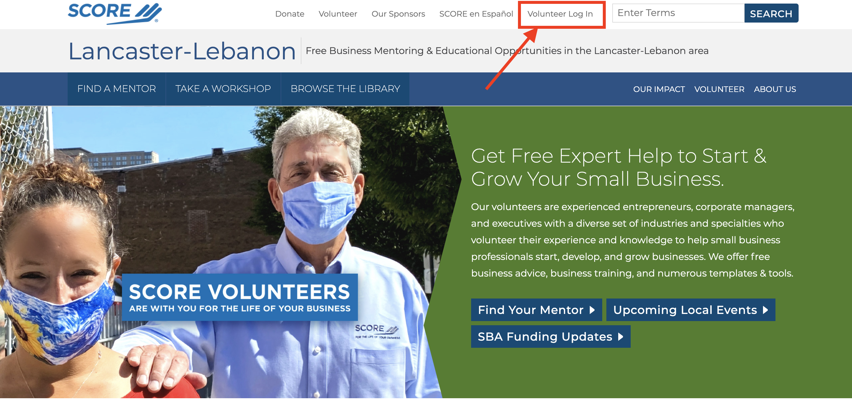 To login go to (chaptername).score.org/login. For example, if you’re with the Lancaster-Lebanon chapter, you would login at lancaster.score.org.