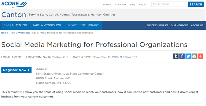 • Social Media URLs: Enter the Full URL of the Social Media accounts that you wish to be associated with this SCORE Chapter. E.g., facebook.com/RichmondSCORE.