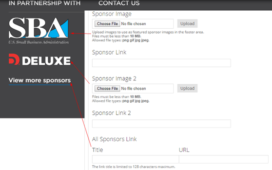 • Sponsor Image 2: Upload the sponsor logo you’d like to display in the 2nd square in the footer.
