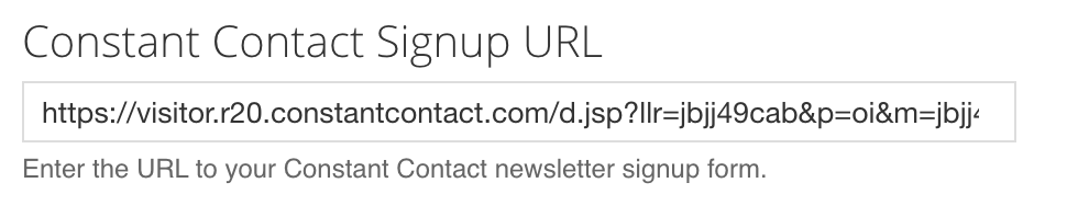 • Constant Contact Sign-Up URL: Add the subscription link to your chapter’s Constant Contact newsletter in this field to have new subscribers added to your email list. Since this area connects to Constant Contact and does not connect to a node within the site it is required that the full URL be utilized.