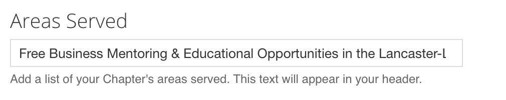 Areas Served: Header text for “Areas Served” to appear next to Chapter Name. There is a 100- character limit.