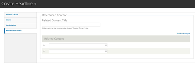 Another option for relating content within the CMS is through the use of “node references”. The node reference fields, unlike the link/URL fields, are pick lists. When using the node reference, enter the first few letters of the title of the node you wish to reference. You can use the auto-complete provide list to select the desired node.