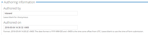 This information is filled out by default and lists the date and time a node was created and the author of the node.