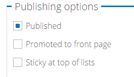 This should be used if you need to remove a node from the site. You can uncheck the “Published” box to remove a page from publication. Unchecking the “Published” box does not delete the content, only removes it from public view.