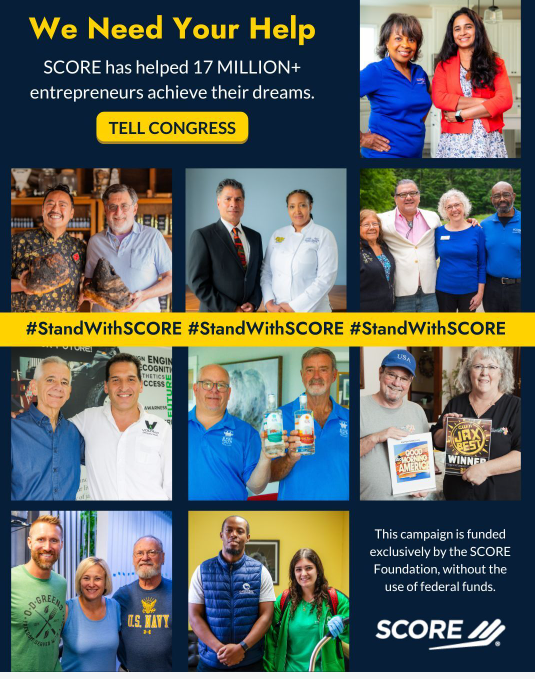 We need your help! SCORE is facing complete elimination of its federal funding under the President’s FY26 Discretionary Budget Request –  a move that jeopardizes the future of the 300,000 small business owners and entrepreneurs SCORE serves each year.