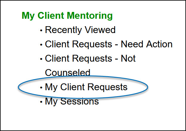 2) To view your Mentoring Requests, from the Home Page select My Client Requests.
