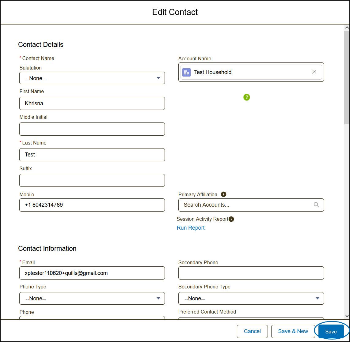 2) If no contact record exists, click here on the below screen to create a new client Contact record.