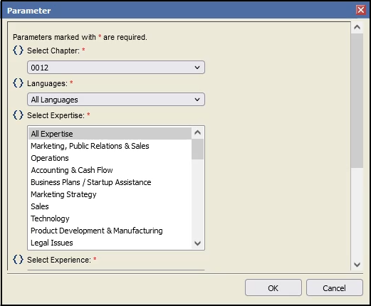 3) You'll get redirected to the BIRT Reports Viewer page - and when prompted, select your chapter if it isn't selected yet on this window. Select all applicable fields in this window too.
