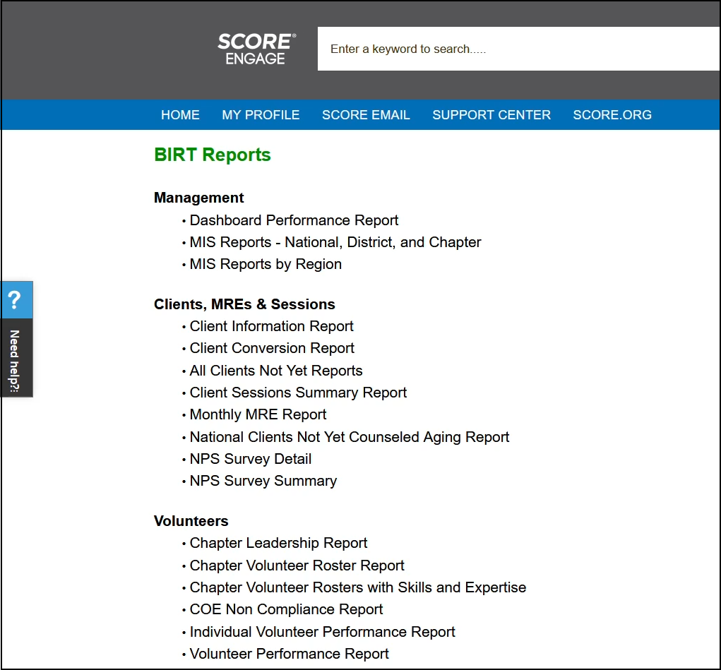 1) Click BIRT Reports from the Engage Homepage.