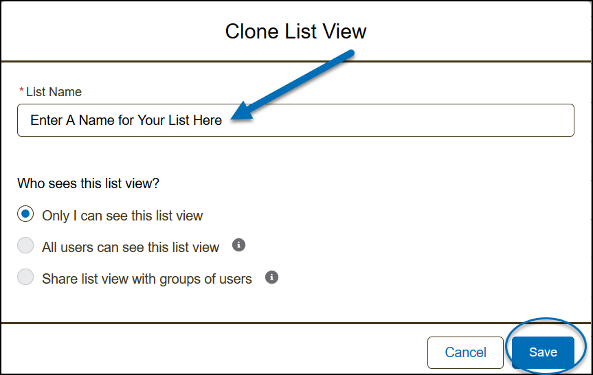 3) Enter a List Name in the field provided and click Save.