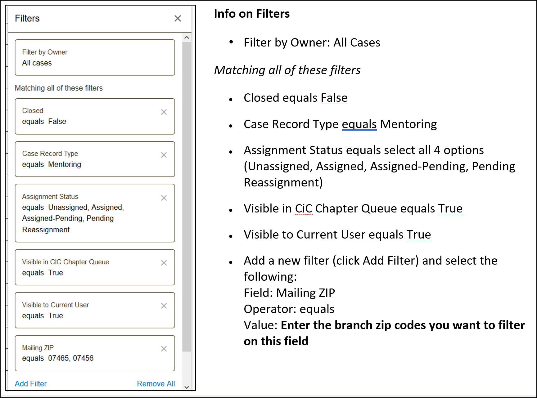 Then Add Filter for Mailing ZIP equals <enter zip code, use comma to separate the items>.