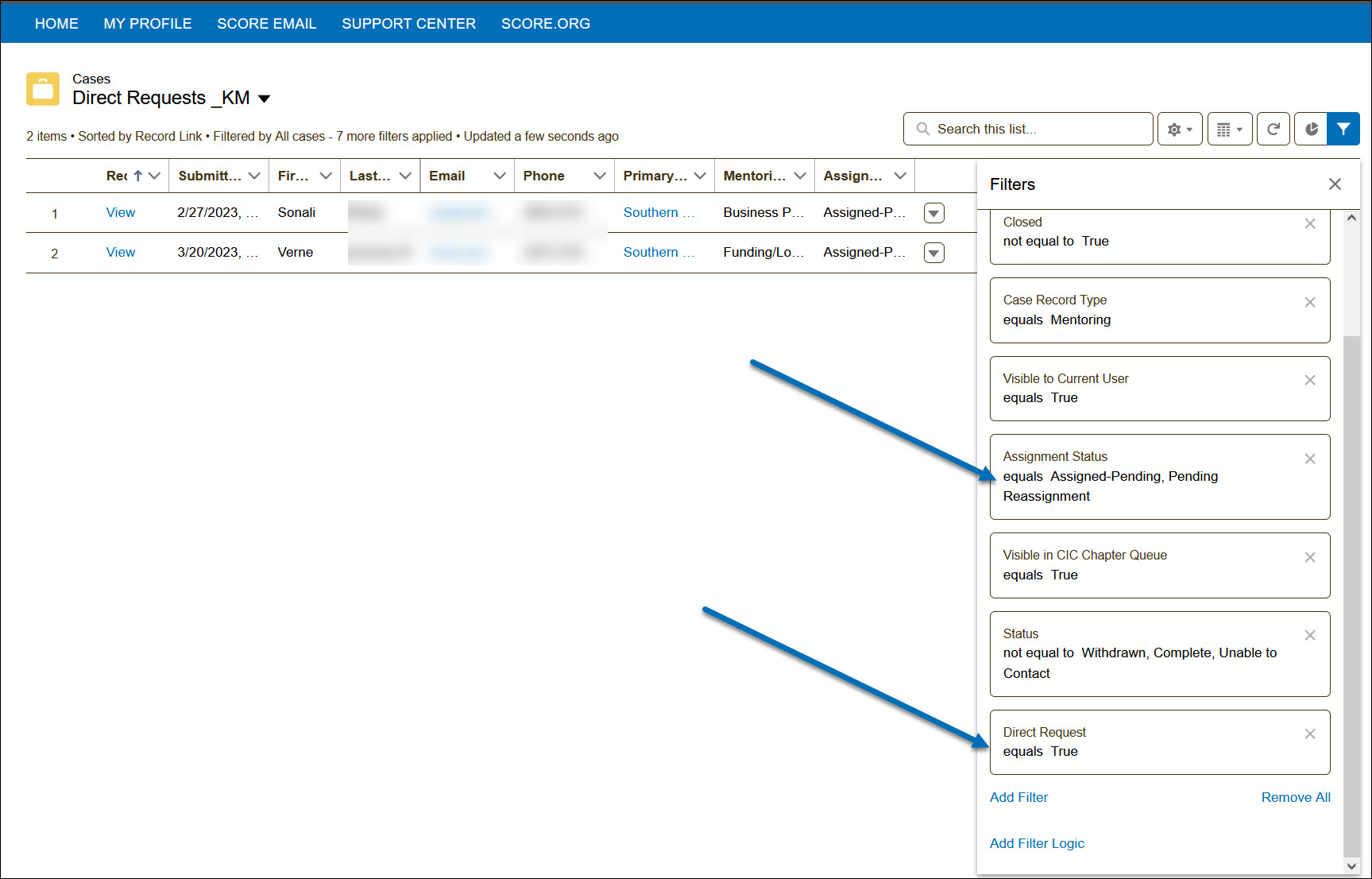 Then, adjust Assignment Status accordingly and Add Filter: Direct Request equals True.