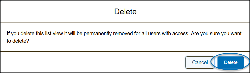 3) Confirm Delete and it will permanently remove the customized list view.