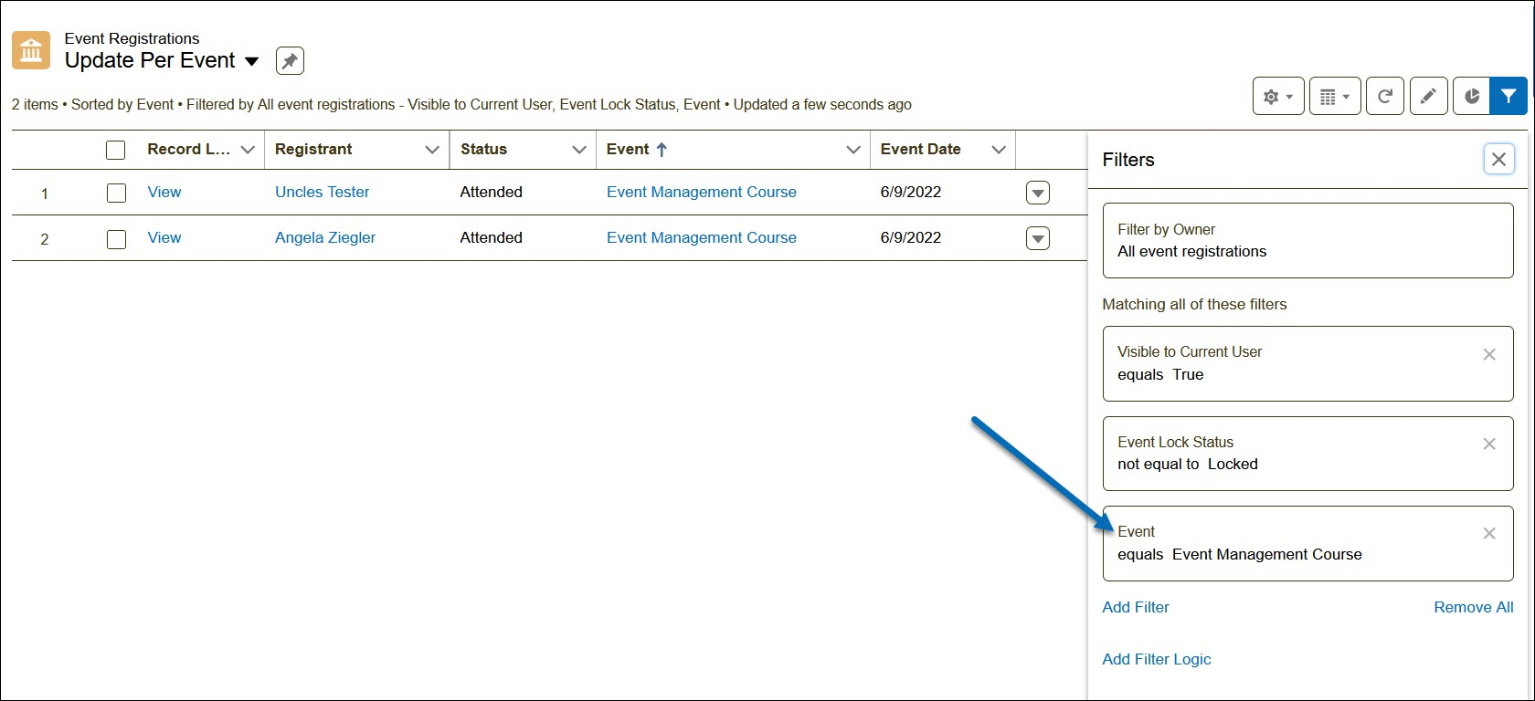 Example 3 - Update Registrants for a Single Event