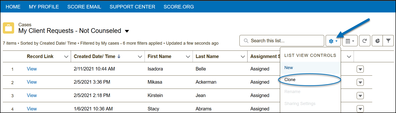 Clone the list view for My Client Requests