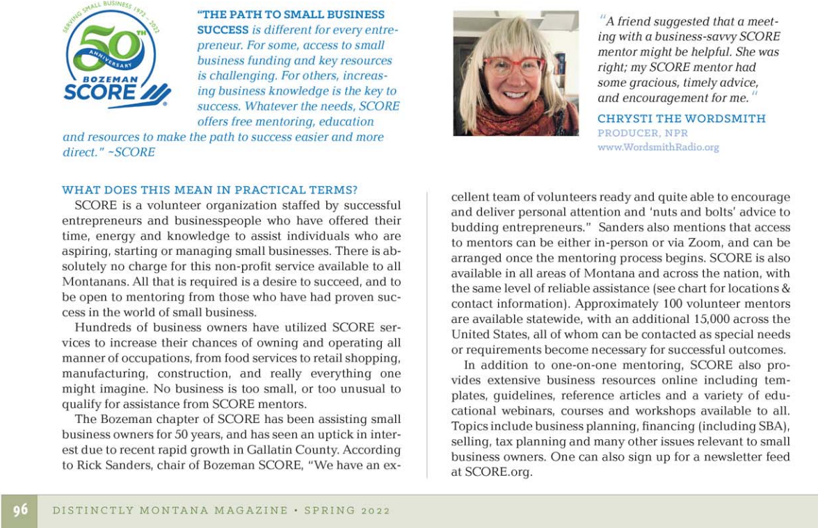 - SCORE Bozeman Chapter Chair, Rick Sanders