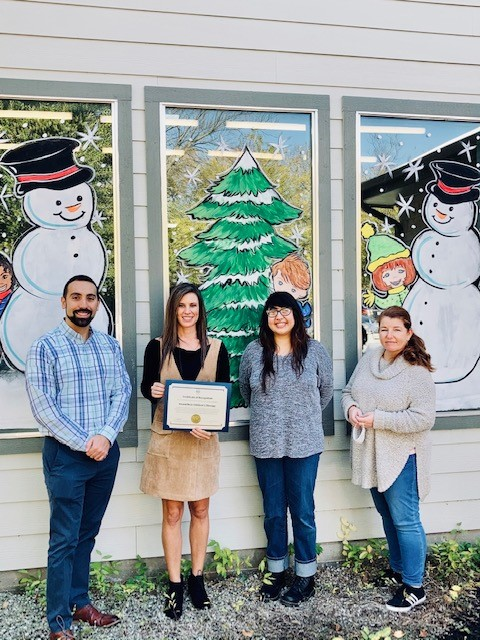 Here she is with certificate given by David Elizondo of SBA out of San Antonio. And her staff.