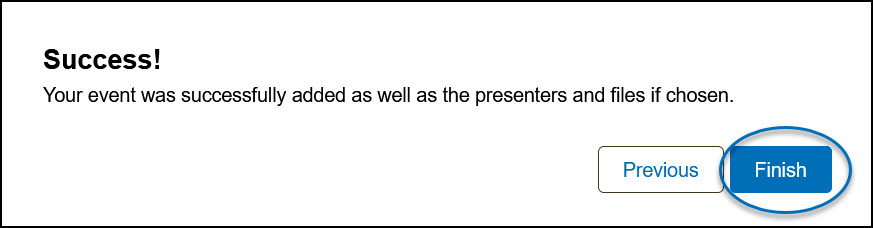 8) On the last window, you'll get the confirmation message that you've successfully created an event. Click Finish and you're done!