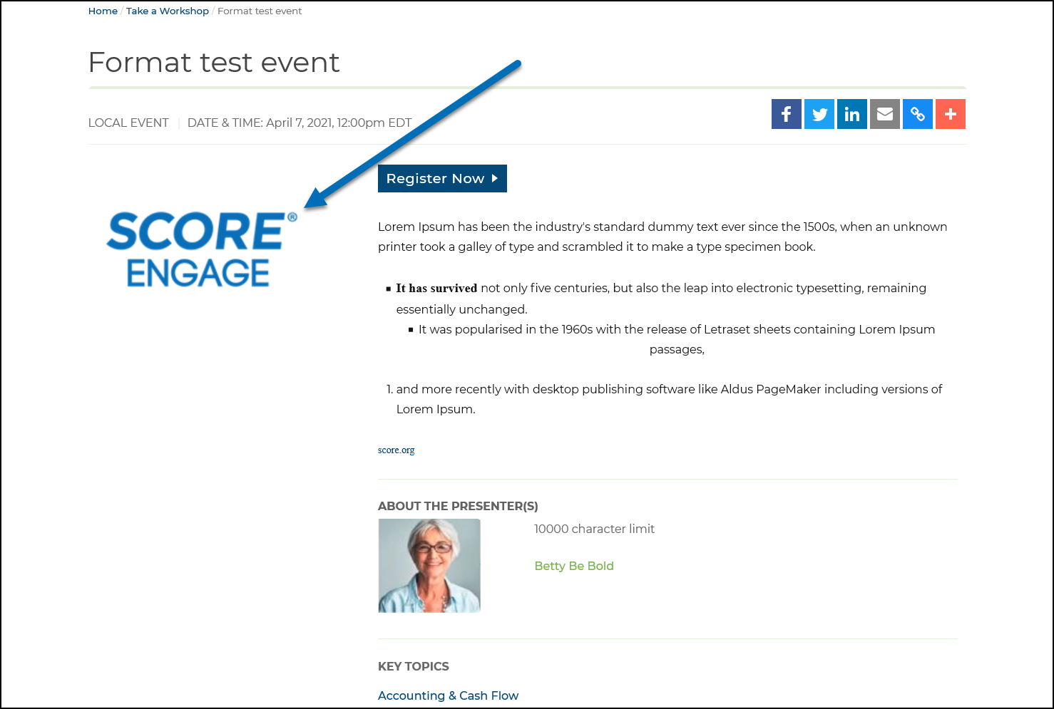 7) The image is now available on top of the event record page. When the event is published online, this Event Main Image will appear on the left side of the event landing page online.