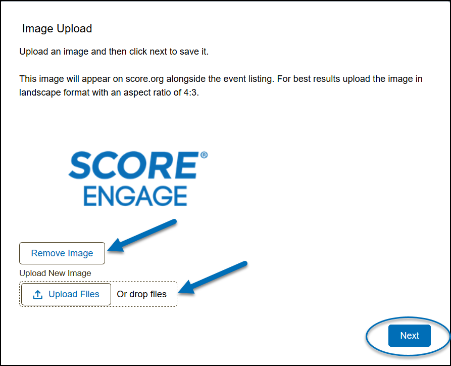 6) Review your uploaded image on the next window. You can remove your image completely by select the Remove Image button or you can also replace the image by uploading a new image file. Click Next when done reviewing.