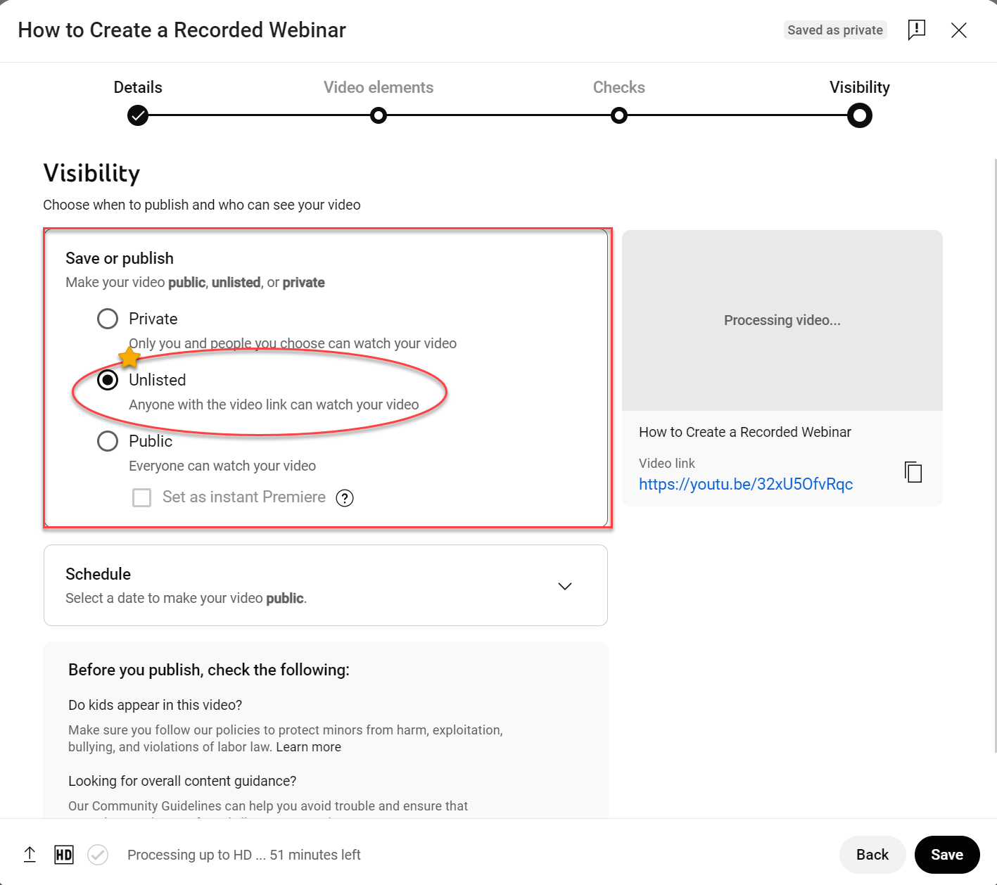 - You are ready to copy/paste the YouTube recording URL for the next steps for the post-event.