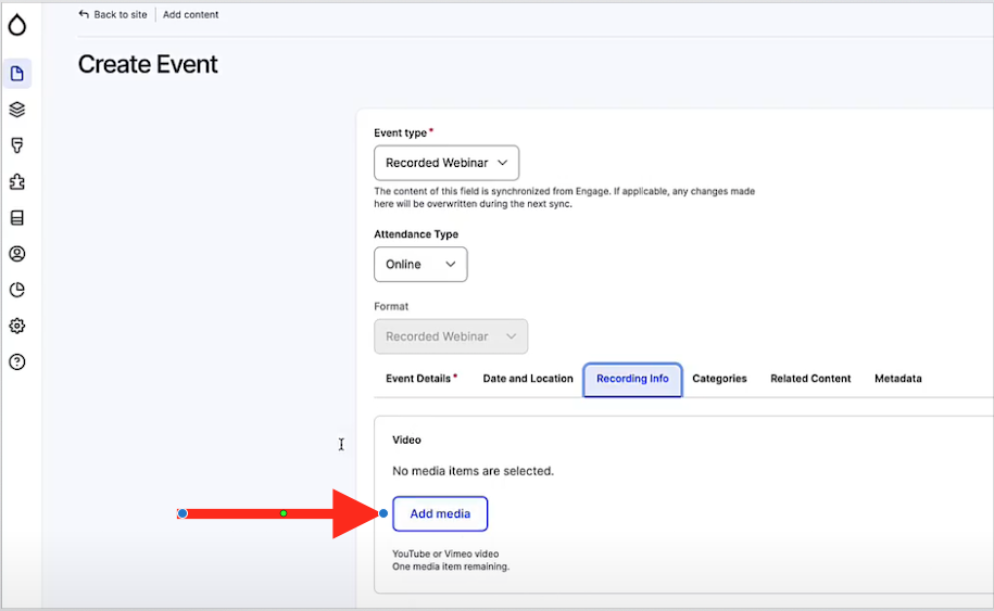 *If you are in the Website Centralization Program or already use Ecropolis, consider creating a ticket for your recorded event with Ecropolis. Be sure to include the relevant information, such as if it was or was not a previous live event (if yes, include the event name and live event URL) and a link to the video recording.