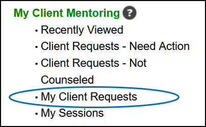 1) From the homepage, click on My Client Requests to see all clients assigned to you.