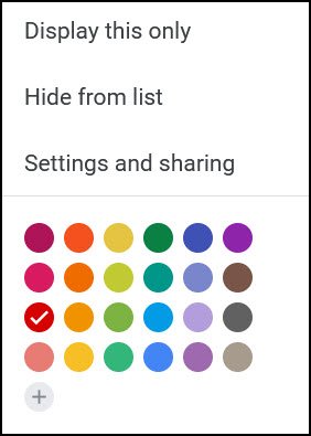 4) The calendar you've created will now appear under My Calendars and you can customize this by clicking the options to the right of the calendar.