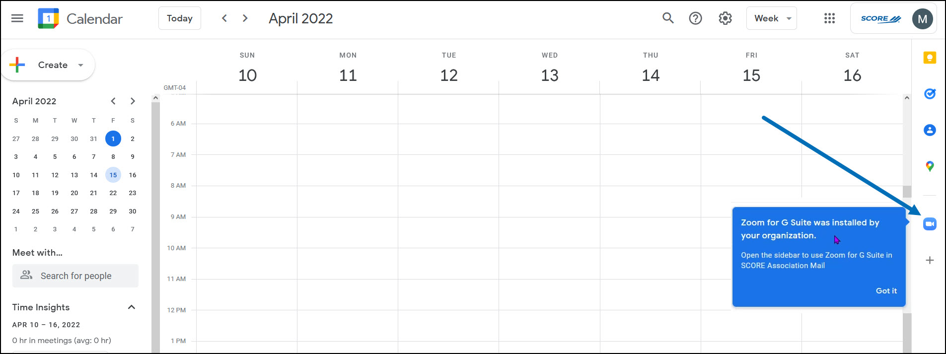 - The Zoom Add-on is already installed by the SCORE Headquarters in your account. You'll find the add-on on the right panel.