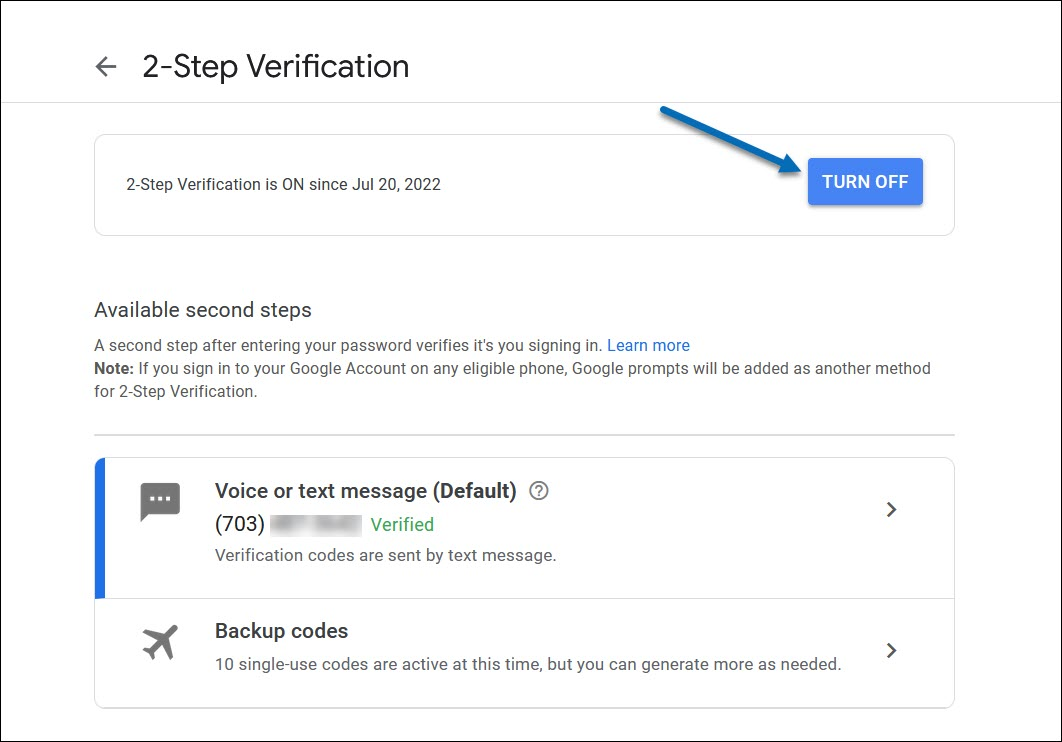 - How to turn off 2-step Verification