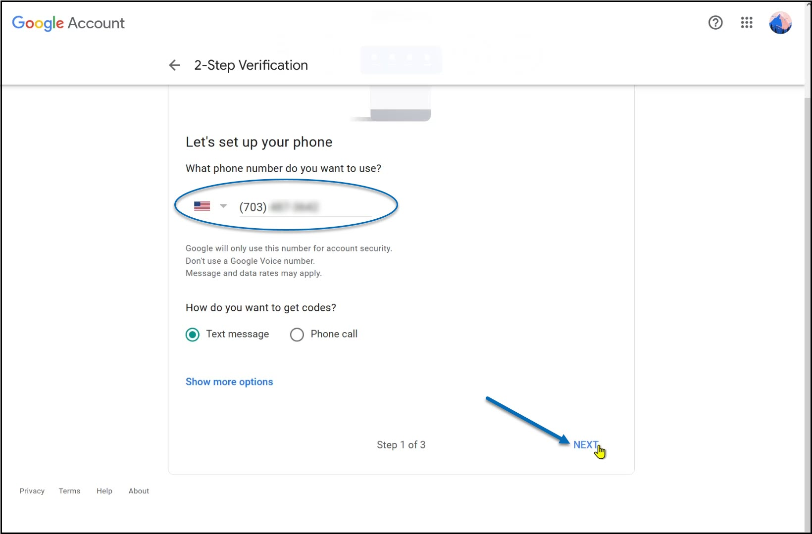 4) Enter your phone number on the field provided and click Next.
