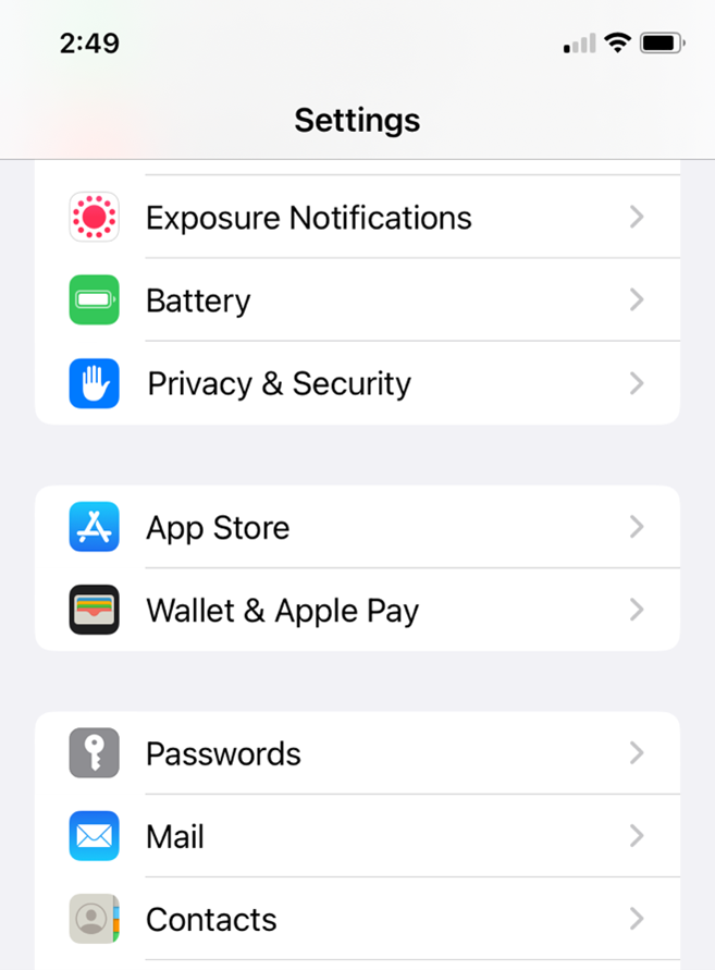 Scroll down until you see Mail and select.