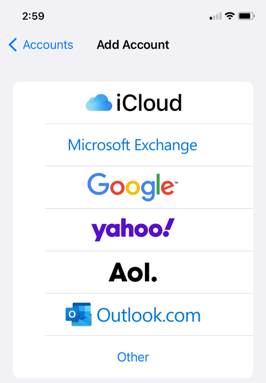 Click Accounts. Then click Add Account.