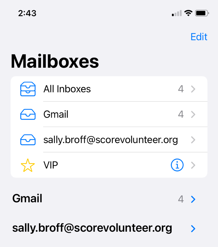 The easiest way to keep up to date on your SCORE email (SVO) is to view it on the email client of your iPhone.