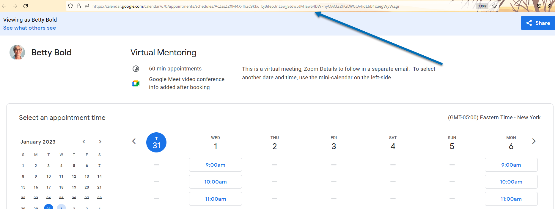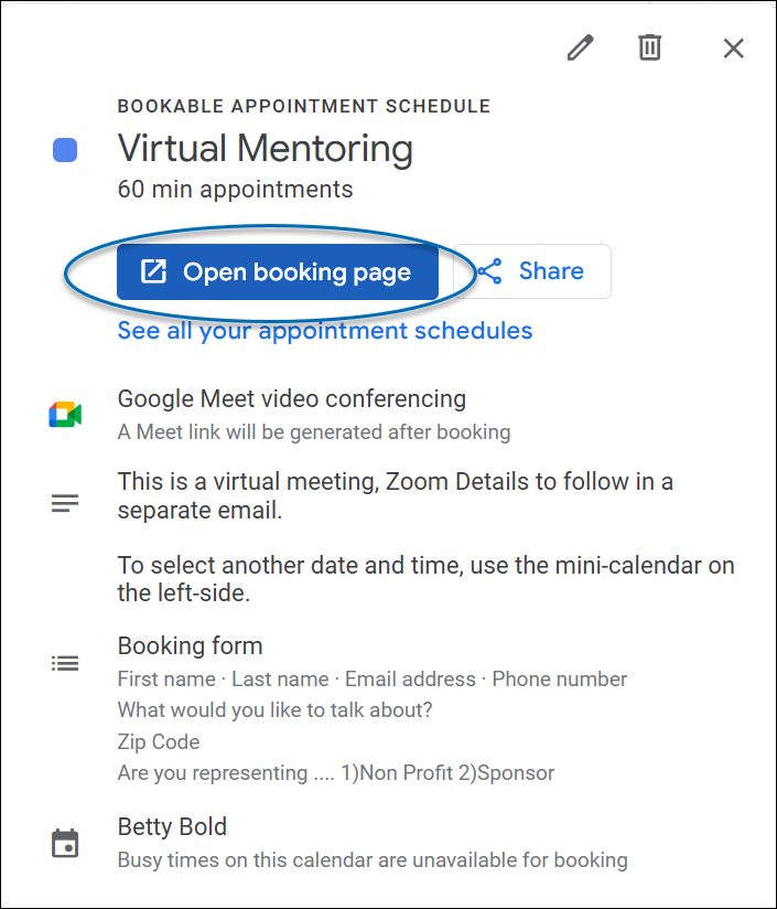 3) Next, click the Open booking page button or the See all your appointment schedules link.