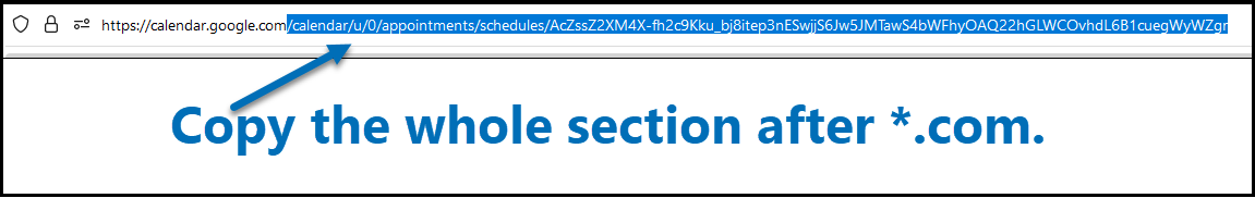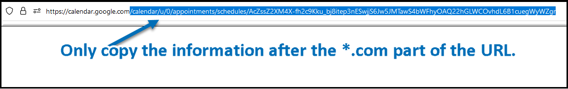 4) In the next window, copy the information in the website address field. Only copy the information after the .com part of the URL (see images below for reference).