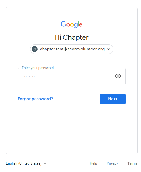 - Enter SCORE Email on the "Sign in to continue to Gmail" page