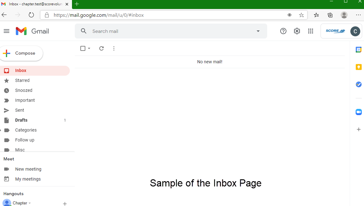 - Inbox page where all SCORE emails will be located (this is an example below).