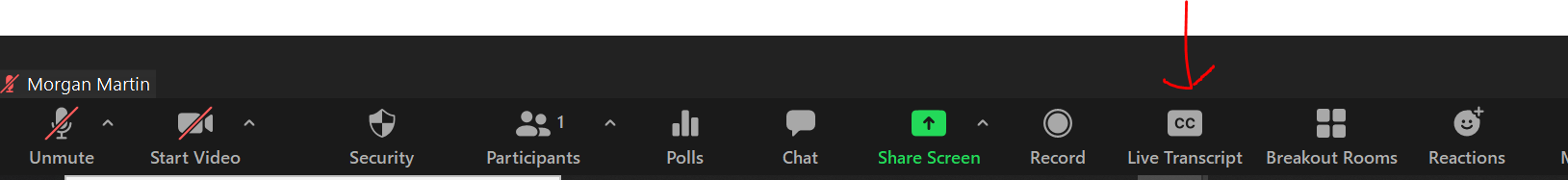 When in your Zoom meeting - to use auto-generated captioning the Host should click the 'Live Transcript' button on the bottom menu.