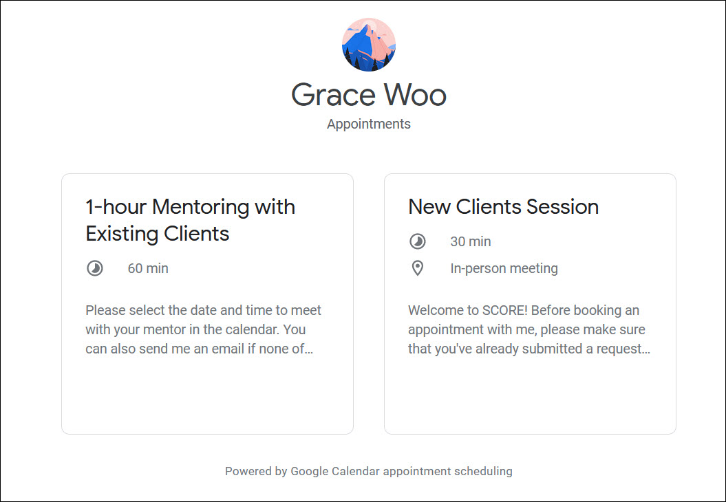 Your booking page is client-facing side and can be sent to your new or existing clients. Clients do not have to log in to a Google account in order to access and book an appointment with you.