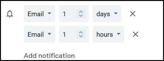The person who made the appointment will get a reminder email before the appointment. We recommend setting this to at least one day before the event. Then, don't forget to add notifications to a booked appointment so ALL guests will receive an email reminder. |