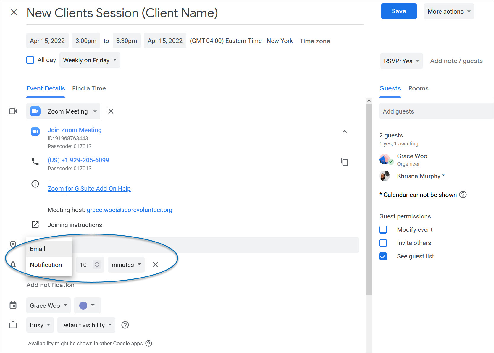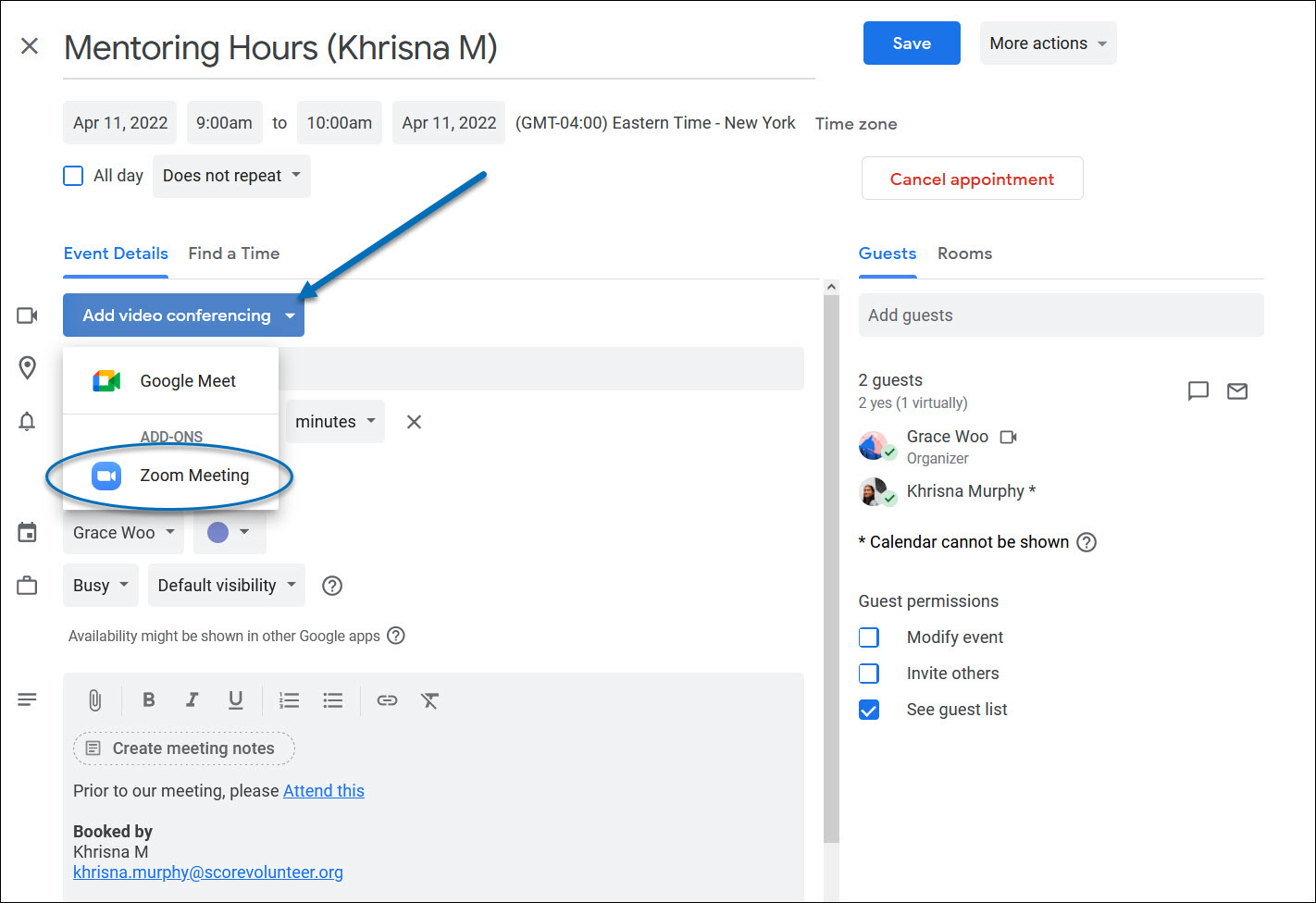 Note: Add a co-mentor as an additional guests after a client has booked an appointment.